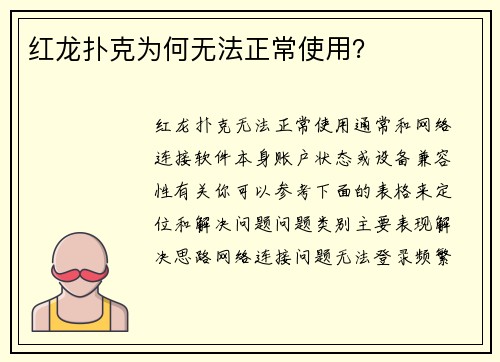 红龙扑克无法正常使用,通常和网络连接、软件本身、账户状态或设备兼容性有关。你可以参考下面的表格来定位和解决问题。 | 问题类别 | 主要表现 | 解决思路 | | :--红龙...